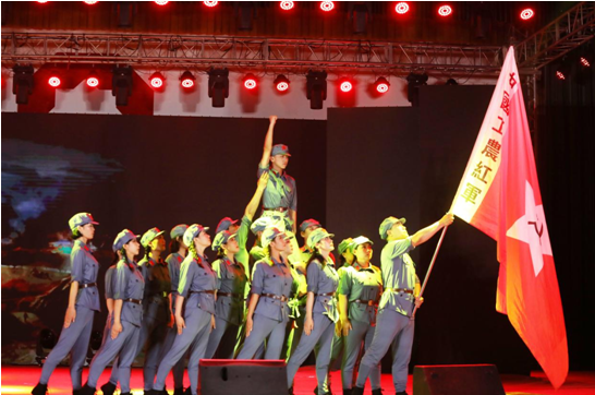 大會休會10分鐘后,一曲《紅旗頌》拉開了文藝匯演序幕。飄揚的紅旗蕩起火紅的海洋,帶人進入革命的世界,心情豪邁,催人奮進。緊接著,《我的祖國》、《十送紅軍》、《唱支山歌給黨聽》、《朗誦》、《打靶歸來》、《在希望的田野上》、《戲曲》、《祖國不會忘記》等節(jié)目一個比一個精彩,一曲比一曲高亢,歡快的鼓點、優(yōu)美的舞姿將中華兒女團結之心、愛國之情、幸福之悅演繹得酣暢淋漓,現(xiàn)場氣氛熱烈而又溫馨。特別是情景劇《十送紅軍》,悠揚的嗩吶聲、優(yōu)美的舞姿,展現(xiàn)了紅軍前仆后繼、披荊斬棘的頑強戰(zhàn)斗,深深表達了革命根據(jù)地人民與紅軍難舍難分的情感?!独收b》節(jié)目中講述了黨的百年奮斗史,展示了黨的豐功偉績,謳歌了偉大新時代。一段段的深情回憶、一句句鏗鏘誓言,激發(fā)出拳拳愛黨心、濃濃愛國情。節(jié)目匯演中間,播放了《安陽中聯(lián)轉型升級宣傳片》、《企業(yè)文化宣傳片》,全體黨員聚精會神地觀看,暗淡的燈光下涌動著對企業(yè)最為強烈地情感,最為堅定的意志。