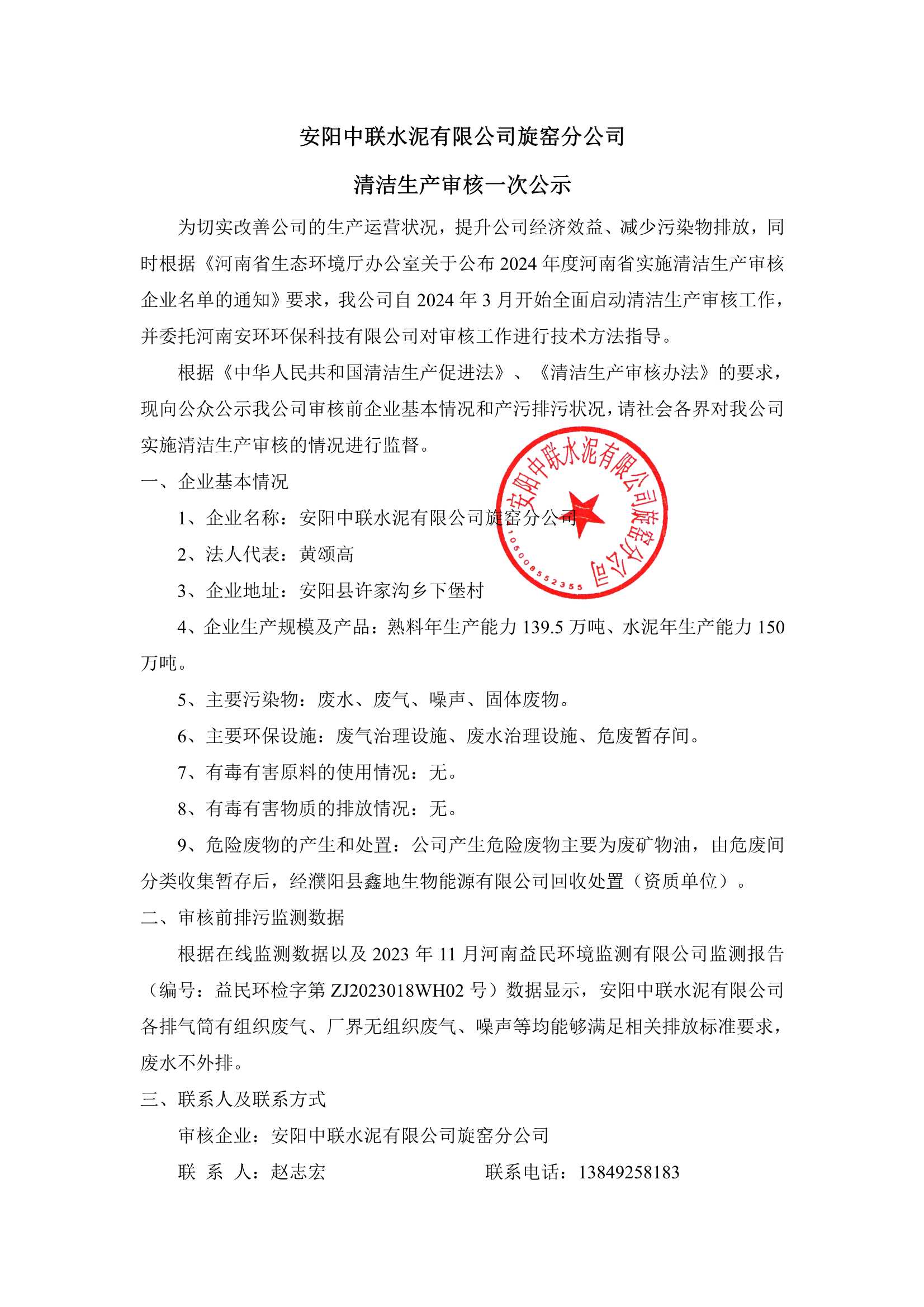 安陽中聯(lián)水泥有限公司(含分公司)2024年度危險廢物年報信息公示